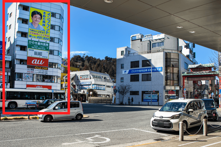 [3] ビルまでは、京王線高幡不動駅 南口を出てから右手側へ進みます。